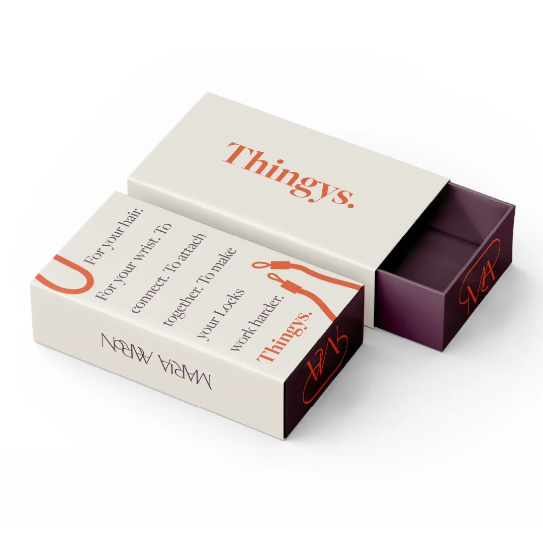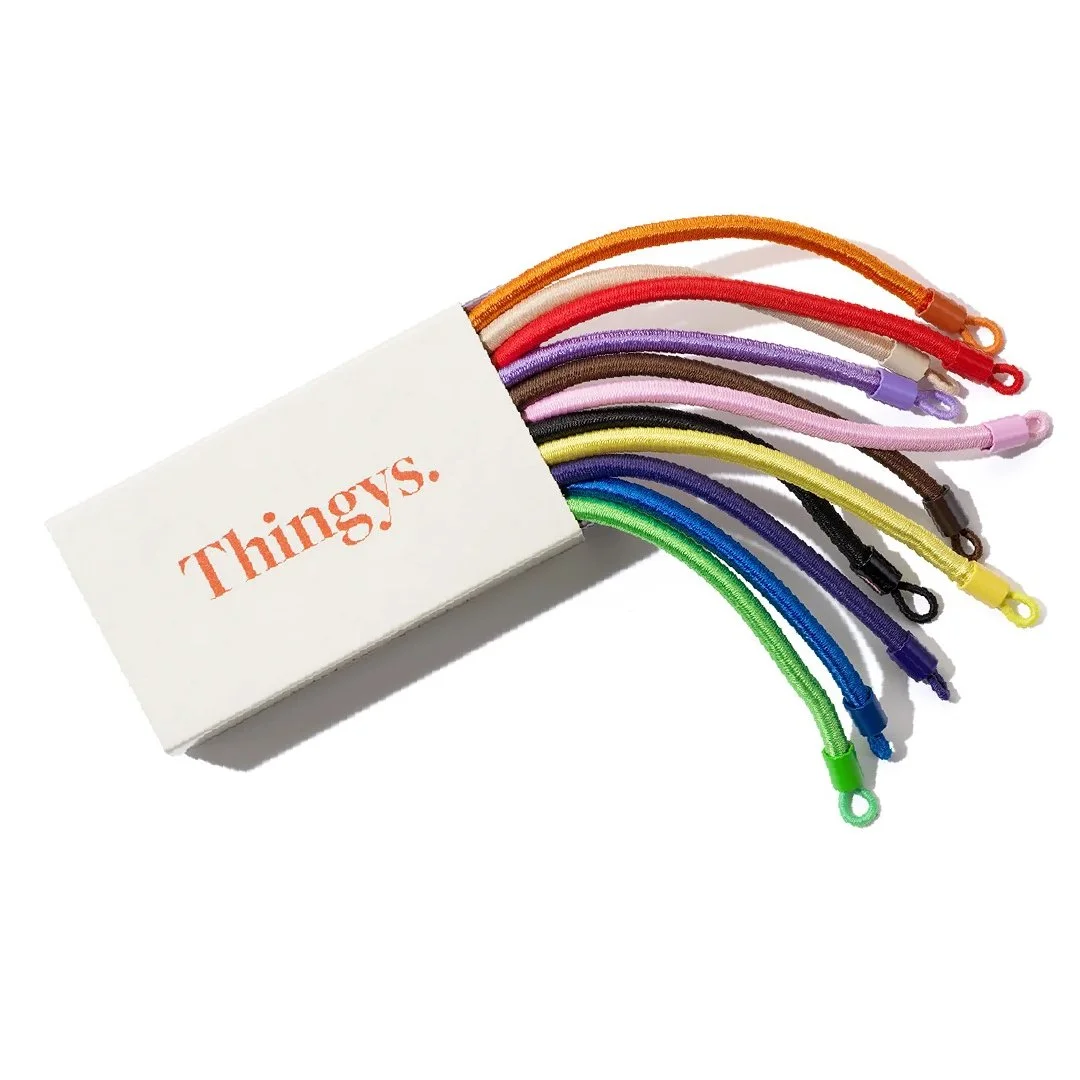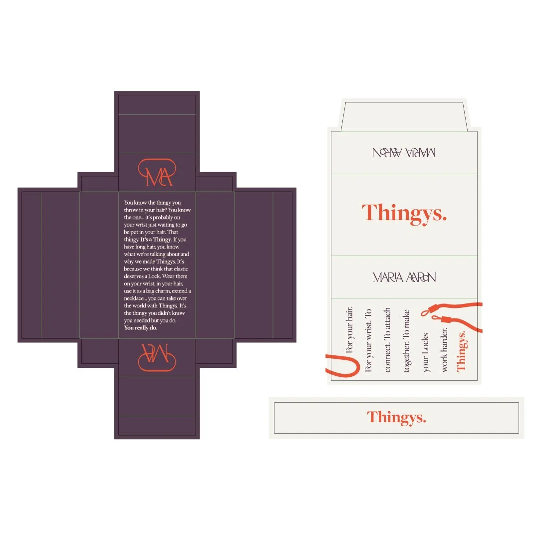 Packaging design for Thingys, a mutli-purpose elastic band with hooks on the end that attach to other jewelry elements.